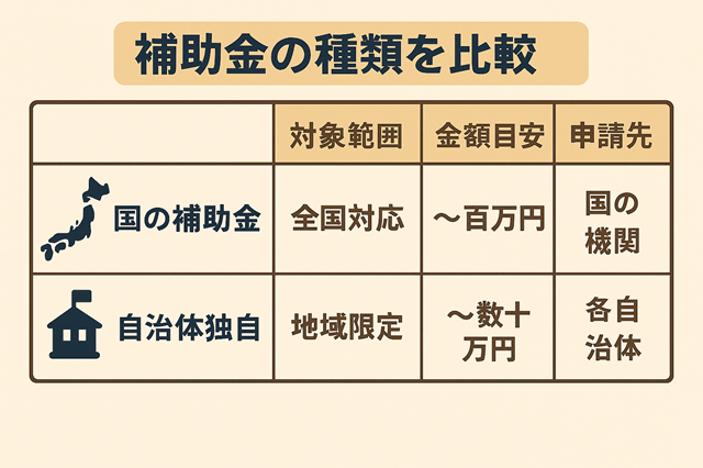 ホームページ制作に使える補助金は、大きく分けて「国」と「自治体」の2種類があります。